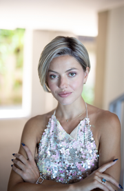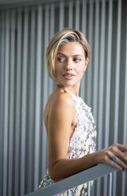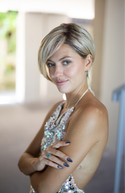 Rachel is a very versatile with a shaped in back, you can glamour her up or style her down.