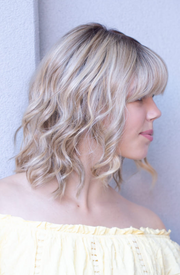 Sandy with a fringe is a gently layered beach wave with a fringe, this flattering style just touches the shoulders.