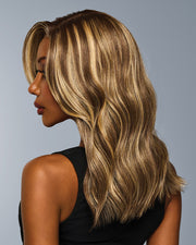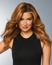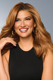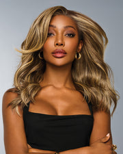 Long, wearable glam. One-length, soft waves with straightened blunt ends and a sweeping, cheek-length fringe, but the hand-tied cap is where the true magic happens. Enjoy the illusion of lush, luxurious hair without feeling overwhelmed.