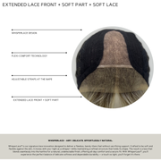 Available in our NM (Natural Movement) fiber, a high-quality blend of synthetic and heat-friendly fibers that reduces shine while maintaining a natural look. Hana is designed with an extended lace front and soft lace part for a natural appearance, with adjustable tabs in the back-nape area for a secure and comfortable fit.